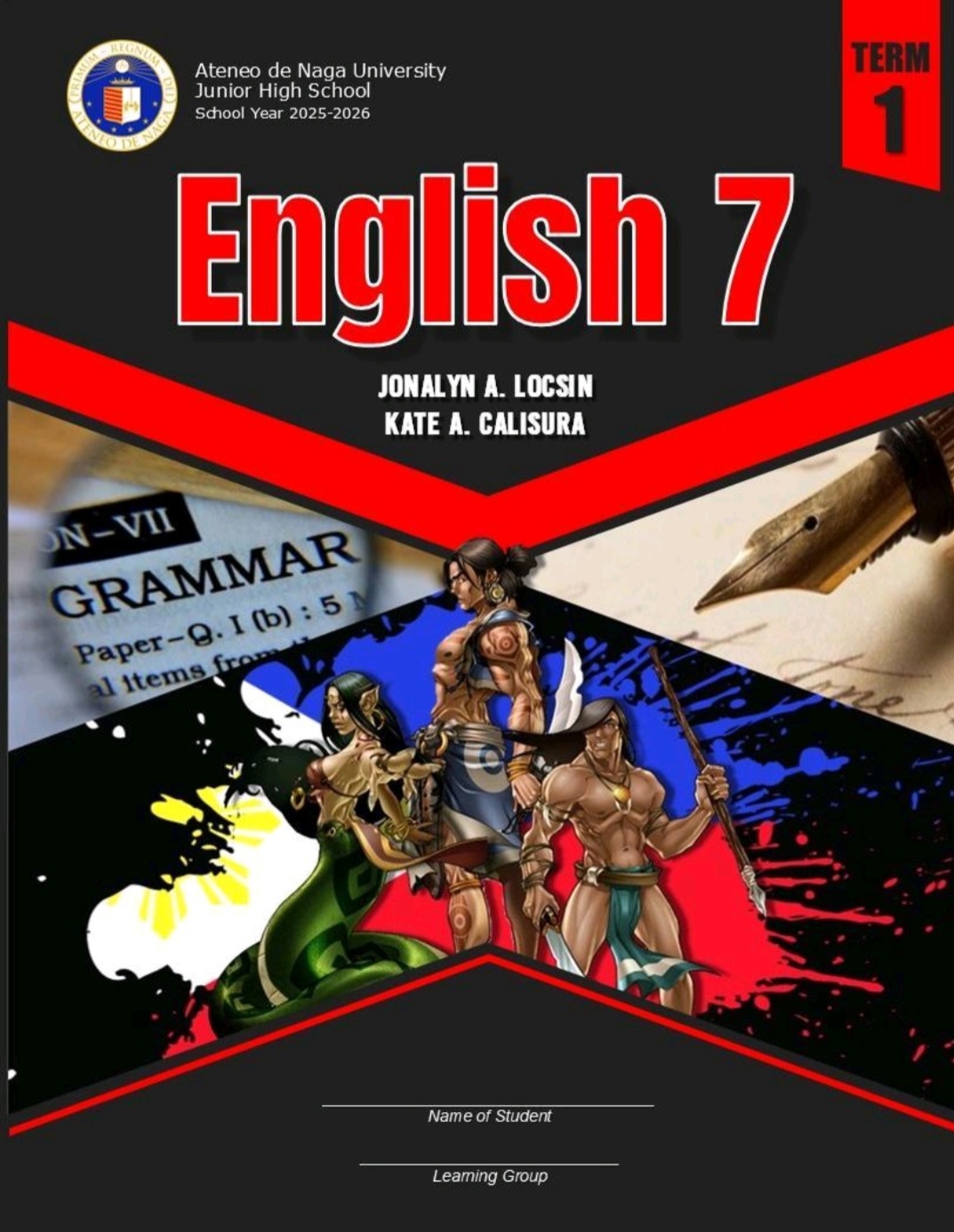 Grade 7 course adopts the communicative approach to English Language Learning. This approach aims to mold a communicatively competent student who knows what to say, to whom to say it, and to respond to situations to communication. Students are exposed to Philippine Literature to enable them to meet new people of all ages, most importantly, those of their present world whose experience will eventually lead them to understand life, feel, think, and act as Christians must.